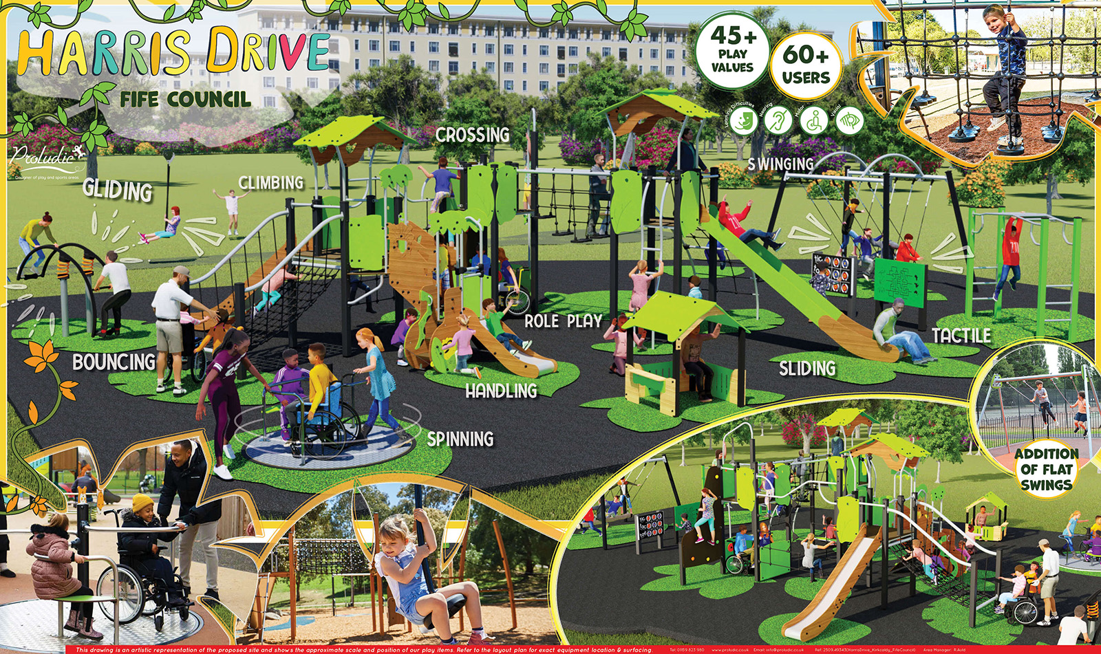 Fife Council are proposing to deliver a new play area at Harris Drive, Kirkcaldy. The previous play area was removed a number of years ago and, as part of the approved Play Space Strategy, it was agreed that this site would be reinstated as a play area for the local community.